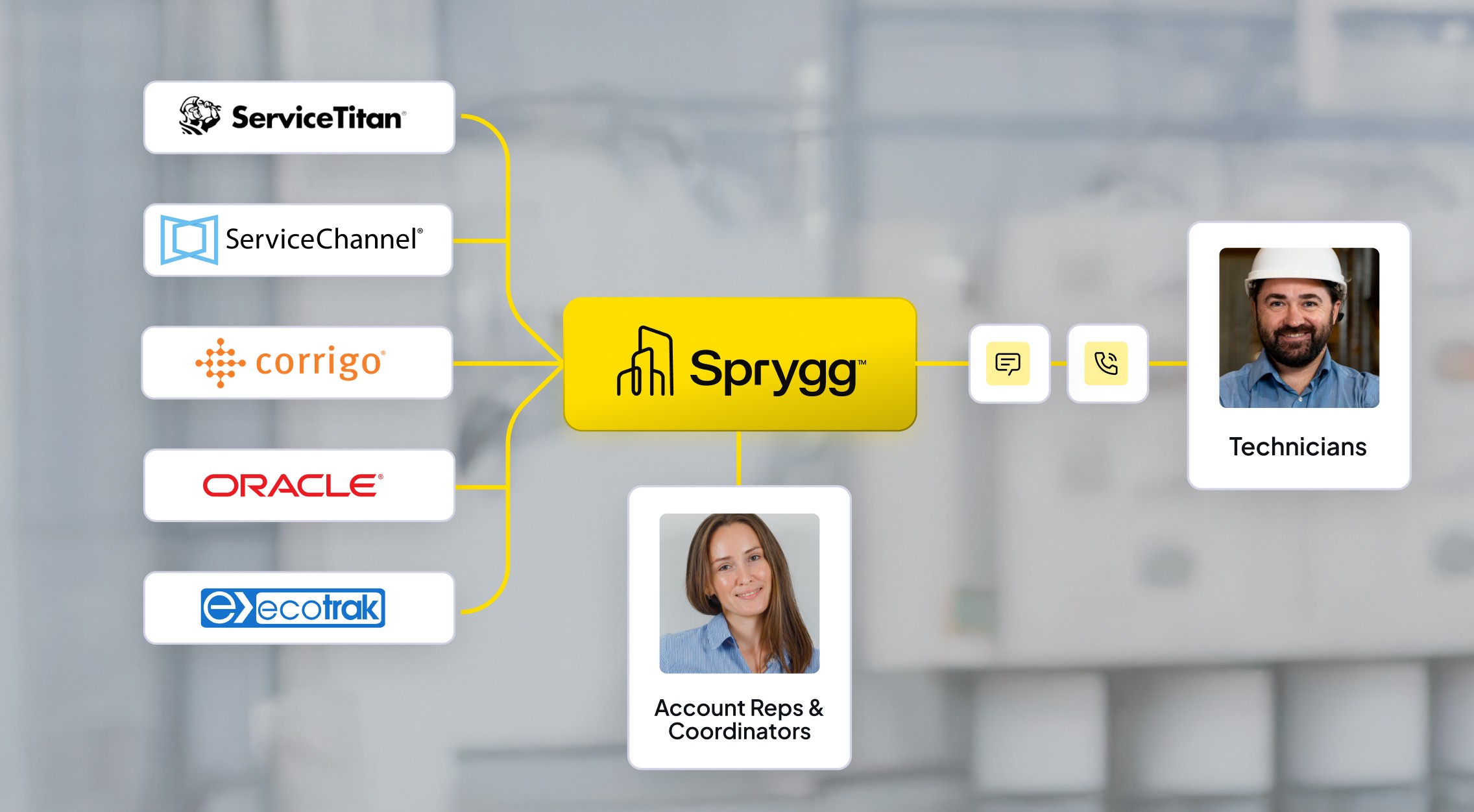Better completion reports with less effort. Sprygg automatically calls technicians to capture service details and automatically produces completion reports.